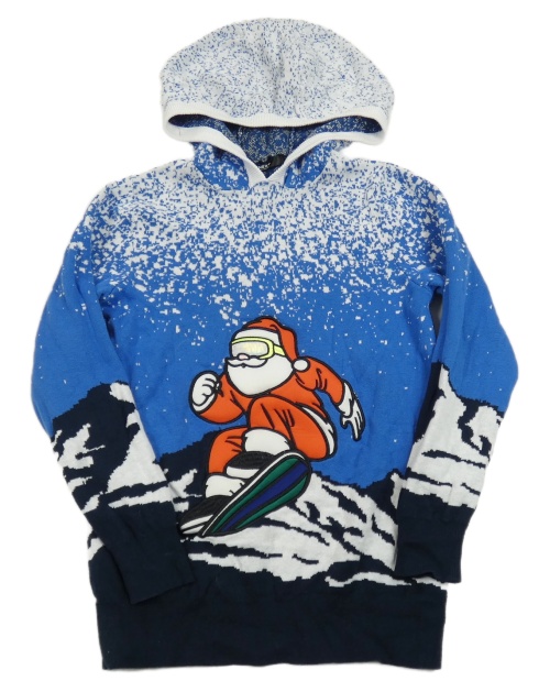 Modro-bílý vzorovaný svetr se Santou a kapucí Next