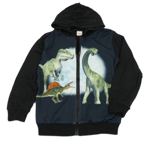 Černá lehká mikina s dinosaury a kapucí