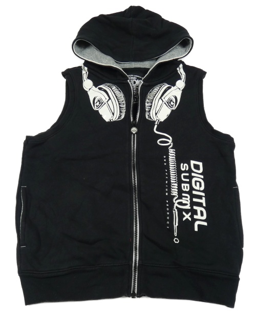 Černá tepláková vesta se sluchátky a kapucí C&A