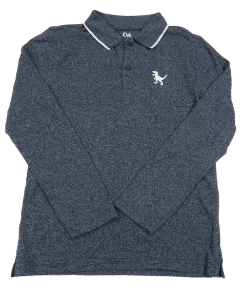 Tmavomodré melírované mikinotriko s dinosaurem a límečkem C&A