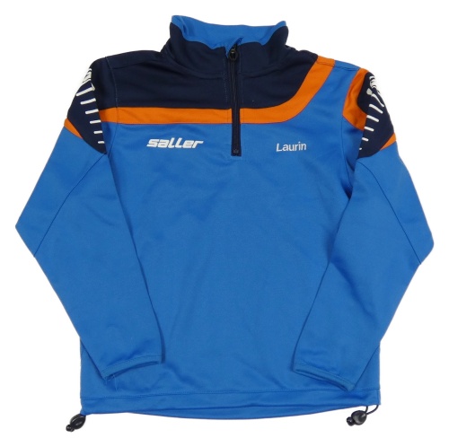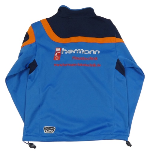 Modro-tmavomodro-oranžová sportovní mikina s výšivkou