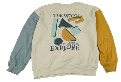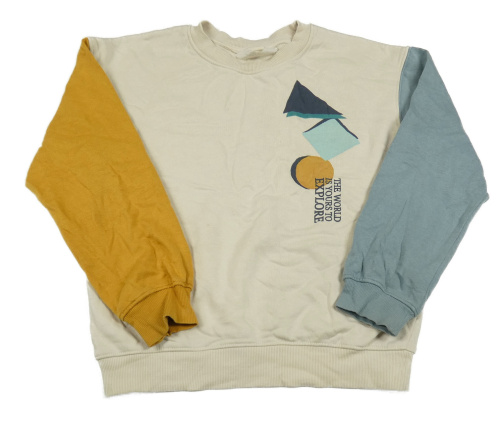Smetanovo-modro-hořčicová mikina s tvary a nápisy H&M
