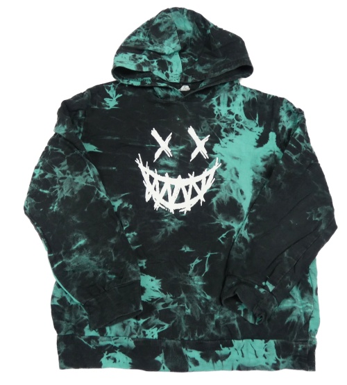 Černo-zelená batikovaná mikina se smajlíkem a kapucí Shein