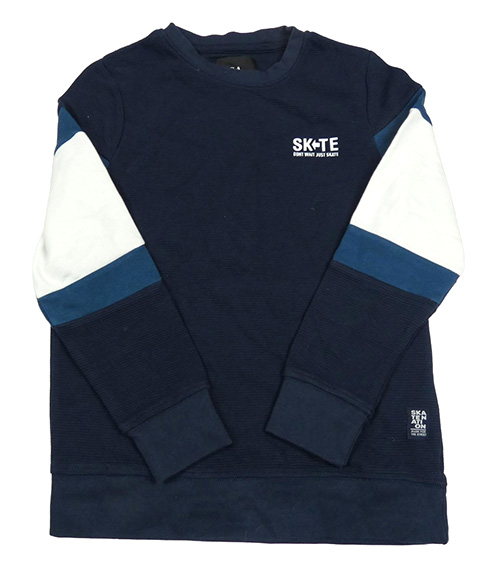 Tmavomodro-bílo-petrolejová mikina s nápisem C&A