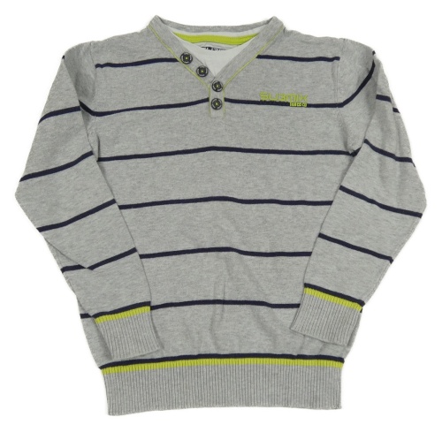 Šedo-tmavomodrý pruhovaný melírovaný svetr s nápisem C&A