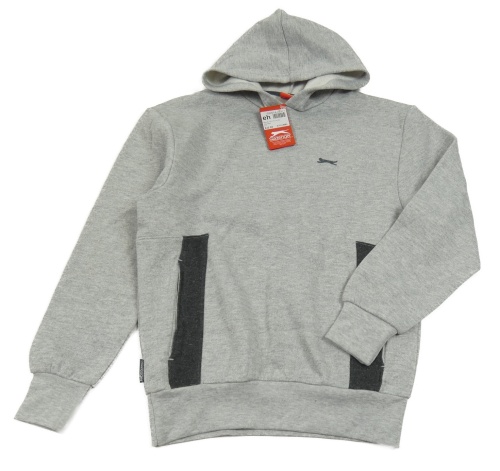 Nové - šedá melírovaná mikina s logem a kapucí Slazenger
