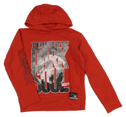 Červená mikina s nápisy a kapucí X-mail
