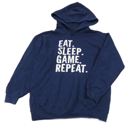 Tmavomodrá mikina s nápisem a kapucí Fruit of the Loom