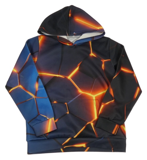 Černo-modro-oranžová vzorovaná sportovní mikina s kapucí