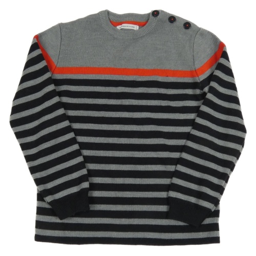 Šedo-černo-červený pruhovaný melírovaný vlněný svetr MONOPRIX