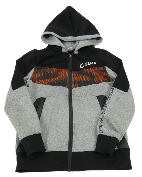 Šedo-army-černá melírovaná propínací sportovní mikina s nápisem a kapucí Chapter young