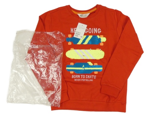 Nové - Červená mikina se skateboardy z flitrů H&M