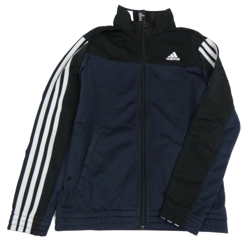 Tmavomodro-černá propínací sportovní mikina s pruhy Adidas