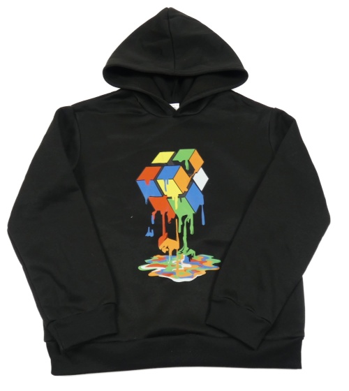 Černá teplá mikina s Rubikovou kostkou a kapucí SHEIN