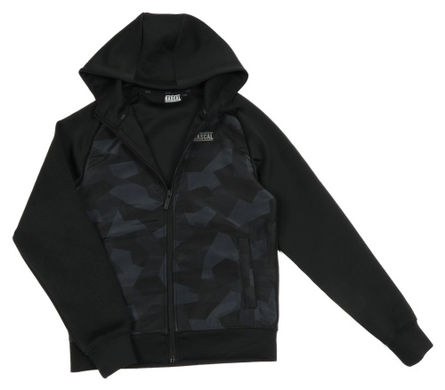 Černo-šedá vzorovaná propínací sportovní mikina se šusťákovým prvkem a kapucí Rascal