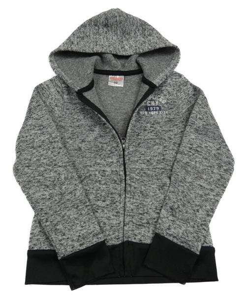 Šedá melírovaná pletená propínací mikina s nápisem a kapucí