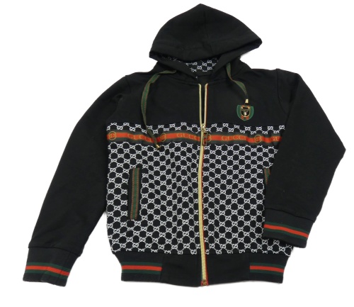 Černo-bílo-zeleno-červená vzorovaná propínací mikina s kapucí Gucci