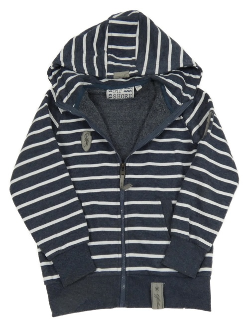 Tmavomodro-bílá pruhovaná propínací mikina s nášivkou a kapucí Off Shore