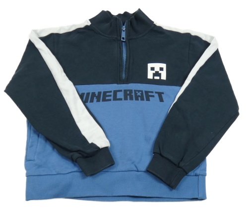 Tmavomodro-modro-bílá mikina s Minecraft