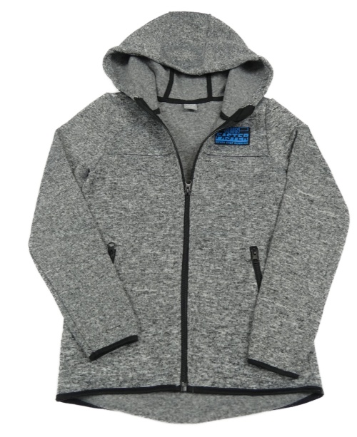 Šedá melírovaná pletená propínací mikina s nápisem a kapucí Y.F.K.
