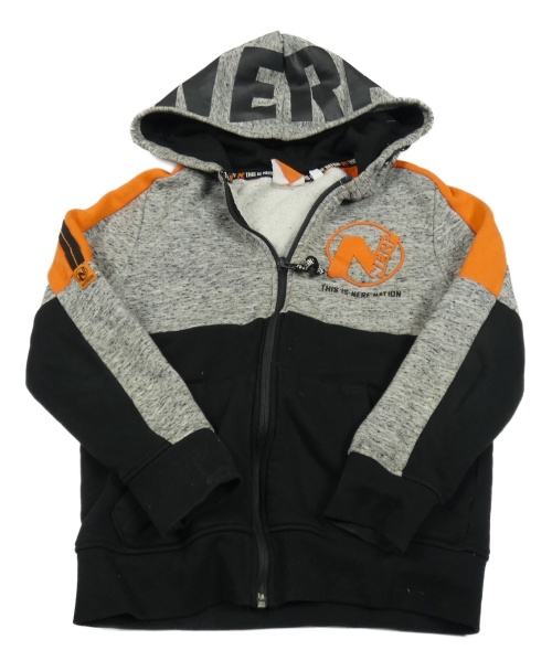 Černo-šedo-oranžová propínací mikina s nápisy a kapucí - NERF