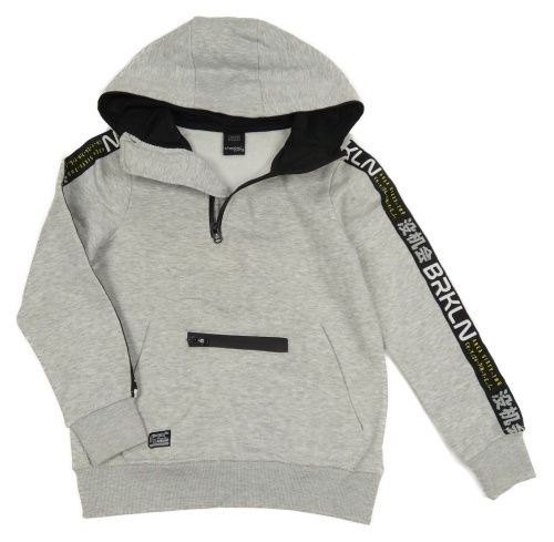 Šedá melírovaná mikina s černým pruhem a kapucí Chapter young