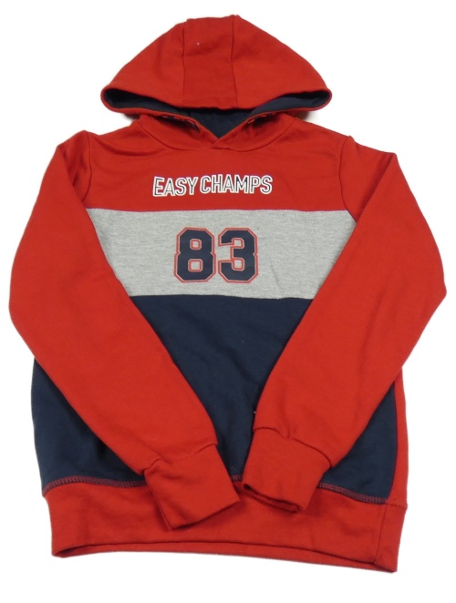 Červeno-tmavomodro-šedá mikina s číslem a kapucí Y.F.K.