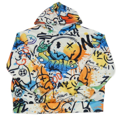 Bílo-barevná skvrnitá mikina s nápisy se smajlíky a kapucí Shein