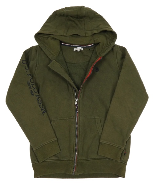Khaki propínací mikina s logem a kapucí U.S POLO ASSN.