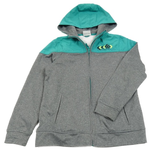 Šedo-modrozelená melírovaná thermo propínací mikina s potiskem a kapucí YIGGA