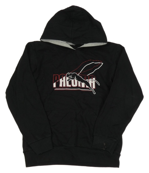 Černá mikina s pumou a nápisem a kapucí