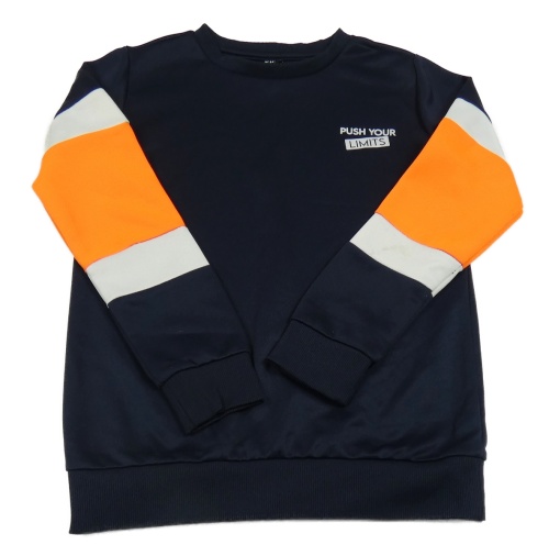 Tmavomodro-bílo-oranžová sportovní mikina s nápisem