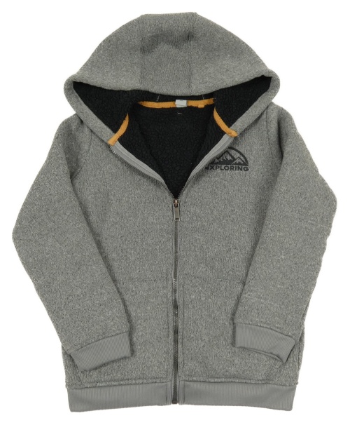 Šedá melírovaná pletená propínací zateplená mikina s potiskem a kapucí Tu