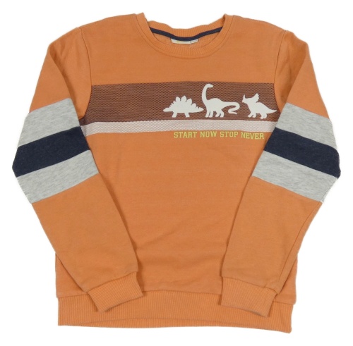 Korálová mikina s pruhy a dinosaury