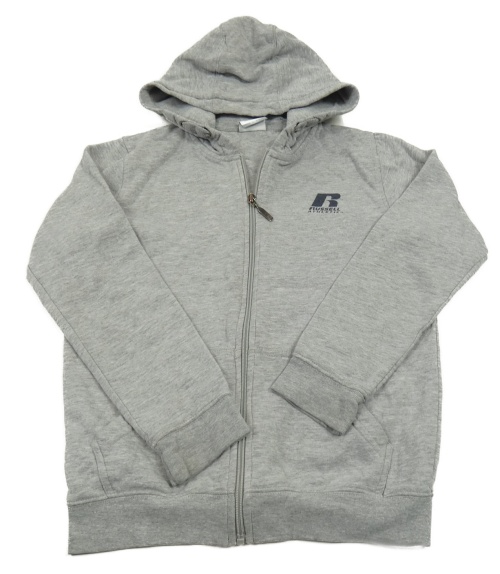 Šedá melírovaná propínací mikina s nápisem a kapucí Russell