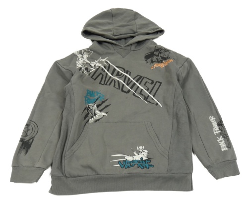 Šedá mikina s nápisy a superhrdiny a kapucí Marvel