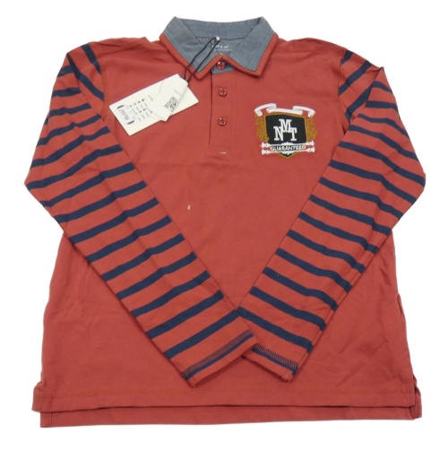 Nové - rezavo-tmavomodré mikinotriko s erbem a pruhy a límečkem name it.