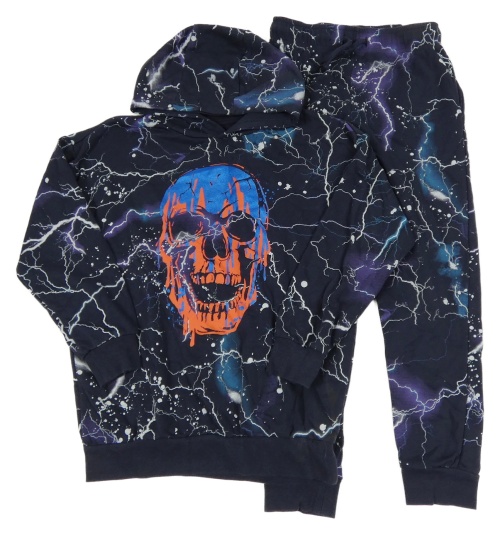 2set - Tmavomodrá vzorovaná mikina s lebkou a kapucí + tepláky F&F