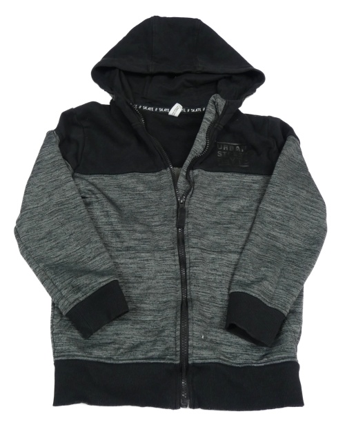 Šedo-černá melírovaná thermo propínací mikina s nápisem a kapucí Yigga