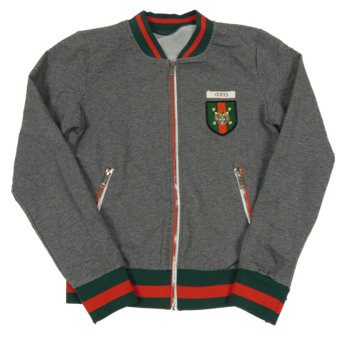 Šedá propínací mikina s pruhovanými lemy a nášivkou Gucci
