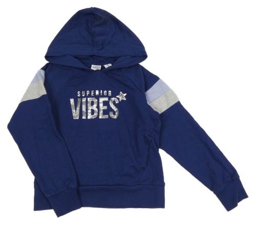 Tmavomodrá mikina s nápisem a kapucí L&D