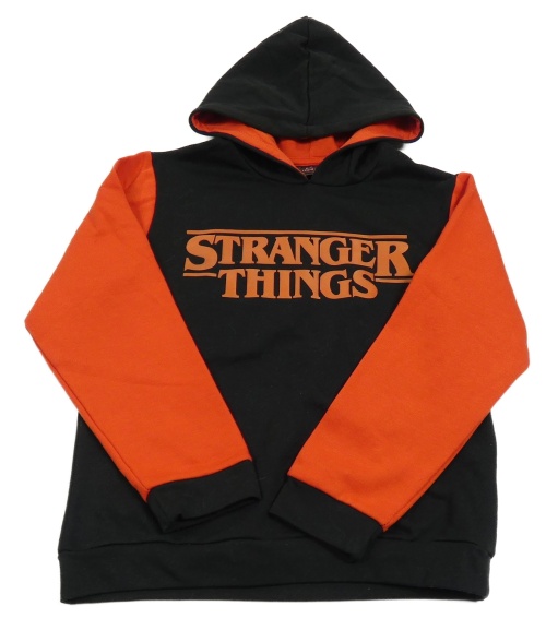 Černo-červená mikina s nápisy - Stranger Things a kapucí