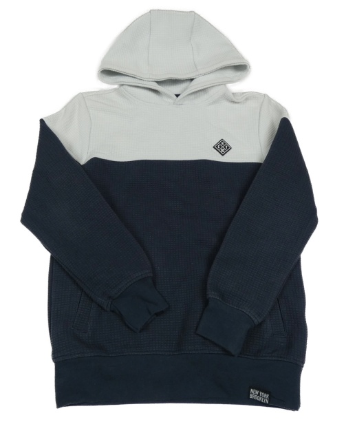 Tmavomodrošedo-bílá kostkovaná//žebrovaná mikina s nášivkou a kapucí Chapter young