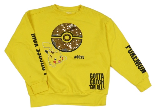 Hořčicová mikina s Pokéballem z překlápěcích flitrů a Pikachu