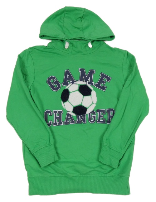 Zelená mikina s míčem a nápisy a kapucí YIGGA