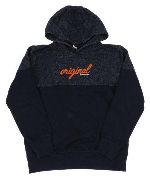 Tmavomodro-melírovaná mikina s nápisem a kapucí YIGGA