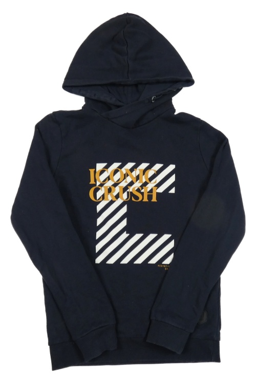 Tmavomodrá mikina s potiskem a kapucí