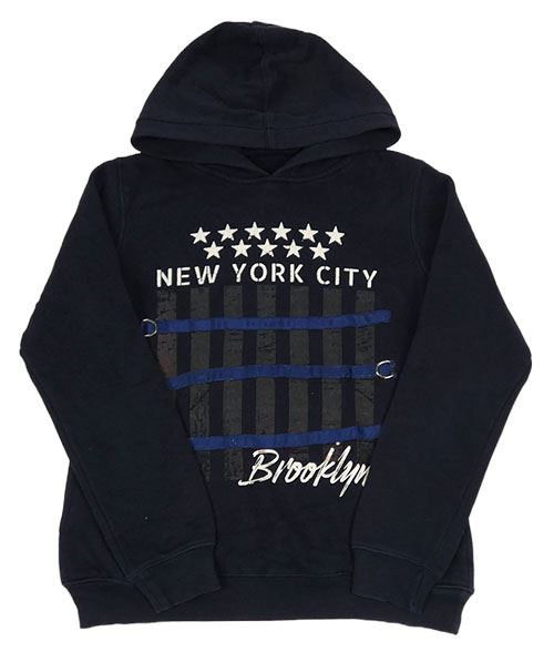 Tmavomodrá mikina s vlajkou a nápisy a kapucí