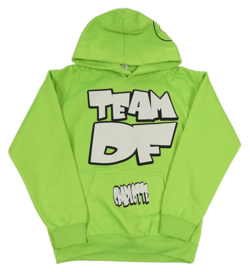 Neonově zelená mikina s nápisem a kapucí AWDis