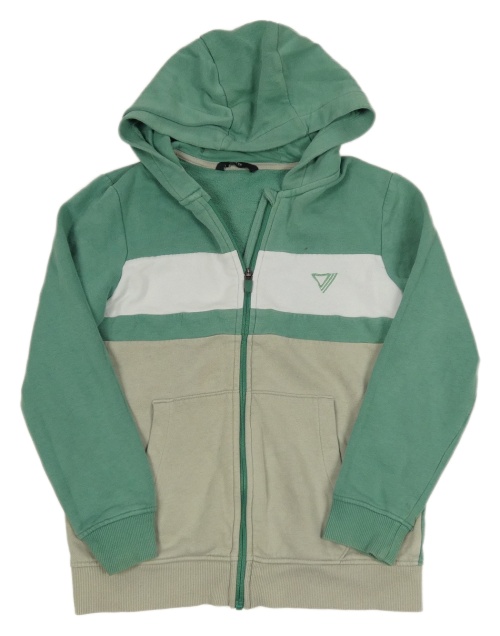 Zeleno-šedo-bílá propínací mikina s výšivkou a kapucí George